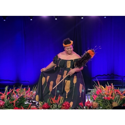 這次藝術節不僅是文化與藝術的盛大呈現與交流,更是一個凝聚全球目光、讓重要議題得以發聲的國際性論壇。在夏威夷州州長發言之際,現場周邊悄然升起許多倡議布條,字字句句關乎著太平洋島國的去殖民化,以及軍用核武實驗退出太平洋地區的迫切呼籲。伴隨著零星的歌曲吟唱與口號,這些聲音在會場迴盪,即便隨即被現場保全制止,但主持人 Telesia Tonga 仍難掩激動,熱淚盈眶地回應。她深深感謝那些勇於表達聲音的人們,並明確表示這些是不可忽視的議題。儘管布條被撤下,口號被壓制,Telesia 承諾,她將持續運用自身的力量與影響力,讓這些議題持續發酵並傳達出去。